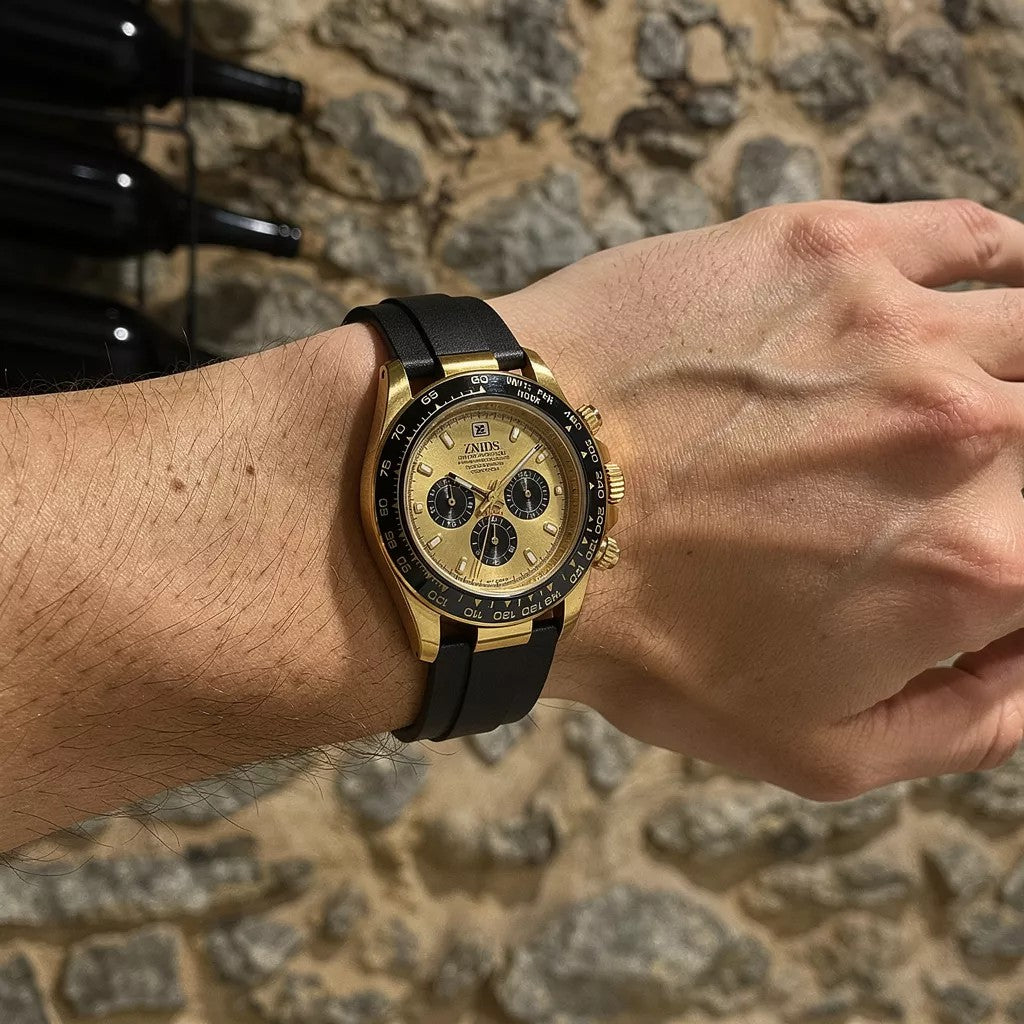 Precisão e estilo minimalista. Este relógio de quartzo apresenta cronógrafo de 6 ponteiros com design minimalista luxuoso, perfeito para o profissional moderno. Pulseira de silicone confortável e resistência à água garantem durabilidade para uso diário.